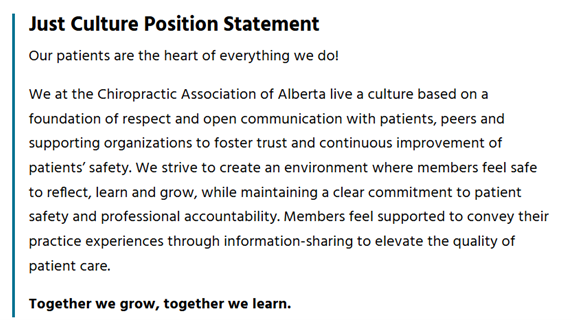 Join the Chiropractic Association of Alberta and other leading organizations who have committed to building a just culture for their patients’ safety