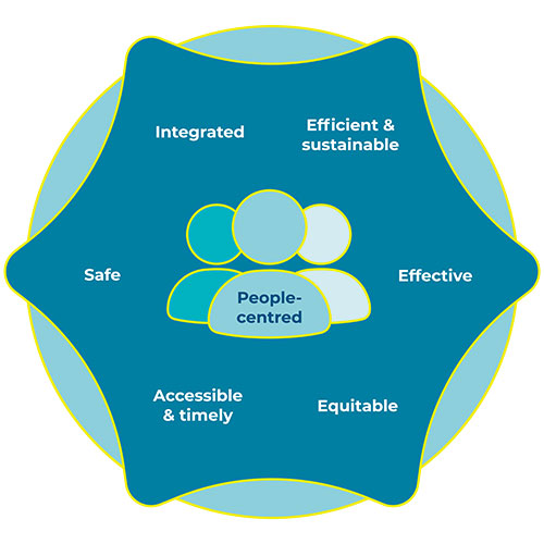 The dimensions act as a lens through which people’s experience in the healthcare system can be viewed. They guide the user in reflecting on people’s needs and how care should be experienced by people. Thinking about each dimension creates awareness of quality in service delivery and, when supplemented by measures, can reveal opportunities for system and quality improvement.